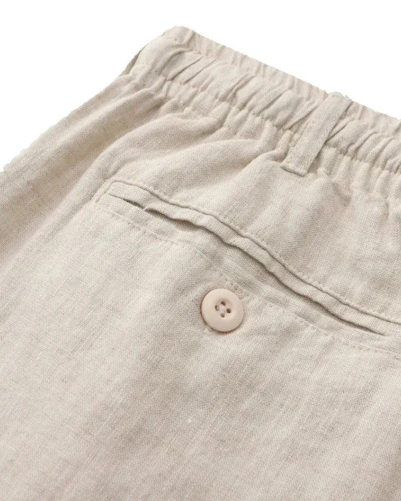 Leinen Shorts - Beige: Leicht und lässig, sind diese Hosen ideal für einen Spaziergang am Ufer oder ein entspanntes Mittagessen am Meer.